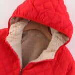 Questo piumino corto con cappuccio è ideale per le giornate fredde o per gli sport invernali. È realizzato in caldo tessuto di cotone, con uno spesso e accogliente cappuccio in pile.