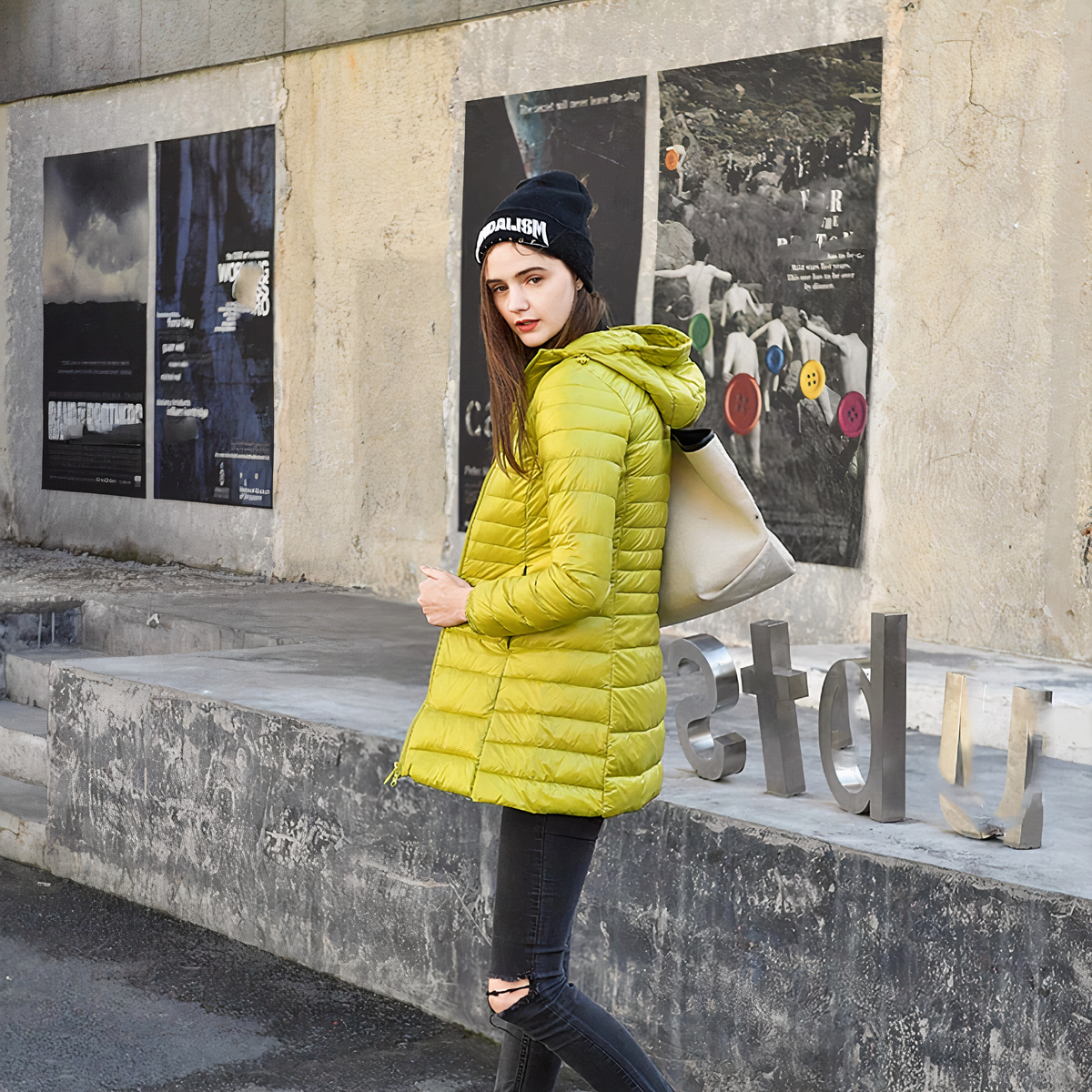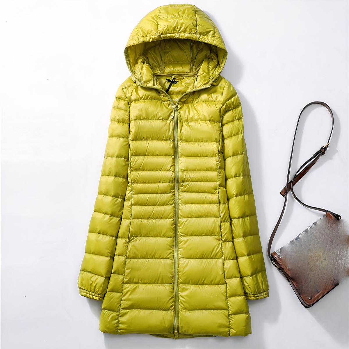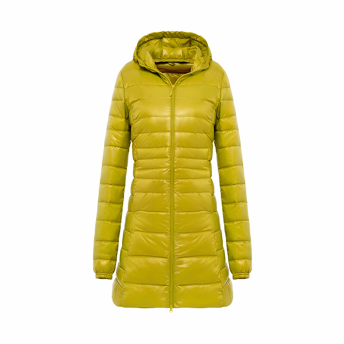 Questo piumino da donna con cappuccio è ideale per tenervi al caldo e alla moda. Il suo colore unico giallo pallido si abbina perfettamente a quasi tutti gli abiti e la sua vestibilità slim vi aiuterà ad affrontare le intemperie.