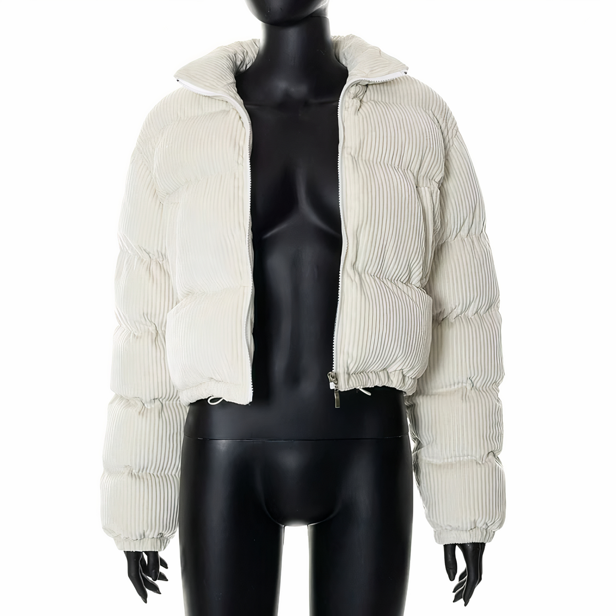 Questo piumino da donna in velluto a coste beige è il complemento perfetto per il vostro stile invernale.