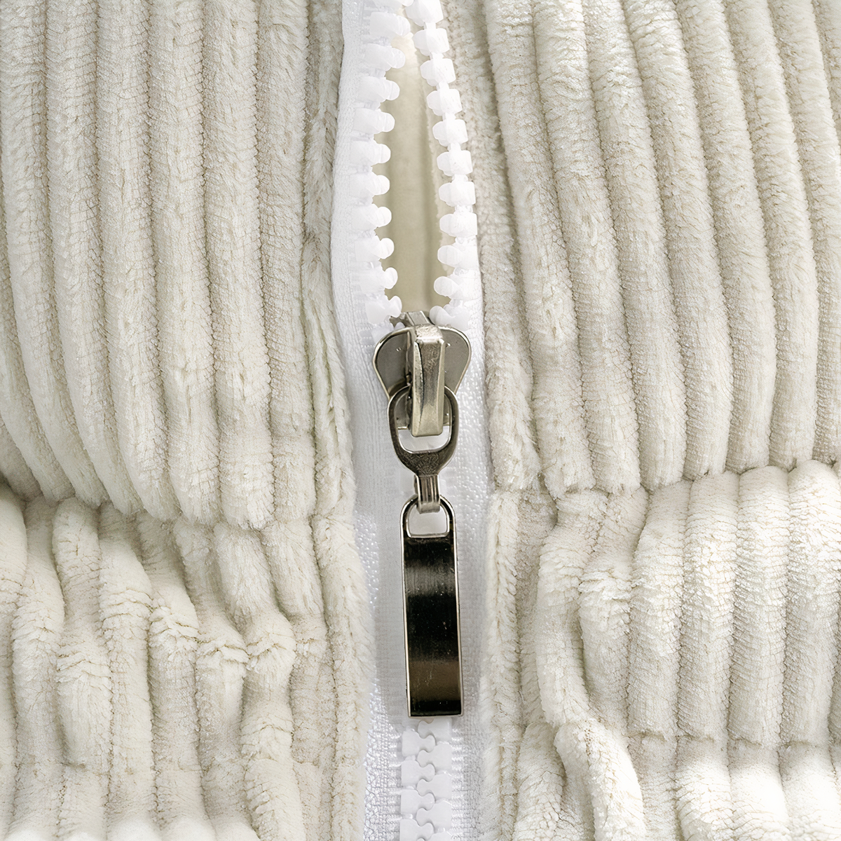 Il morbido tessuto di velluto a coste offre una confortevole sensazione di calore. La finitura accurata e il colore neutro lo rendono elegante e senza tempo, perfetto per un look moderno e di tendenza.