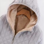 Questo piumino grigio vi piacerà per le stagioni di spalla. Ha una morbida e calda fodera in pile, un cappuccio e una chiusura frontale con zip. I polsini e la vita sono elasticizzati per trattenere il calore corporeo.