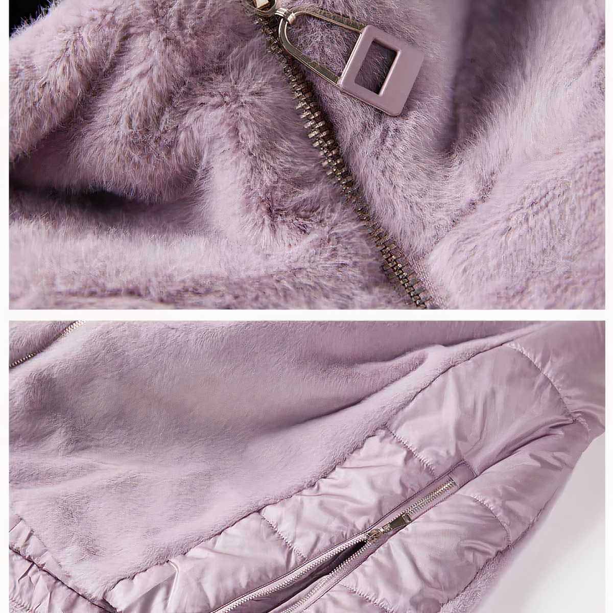 È impreziosito da una pelliccia morbida al tatto sulla parte anteriore e posteriore del corpo, mentre le maniche trapuntate sono metallizzate per un look molto alla moda. Inoltre, il taglio svasato e l’ampio cappuccio aggiungeranno un tocco di stile a tutti i vostri outfit invernali!