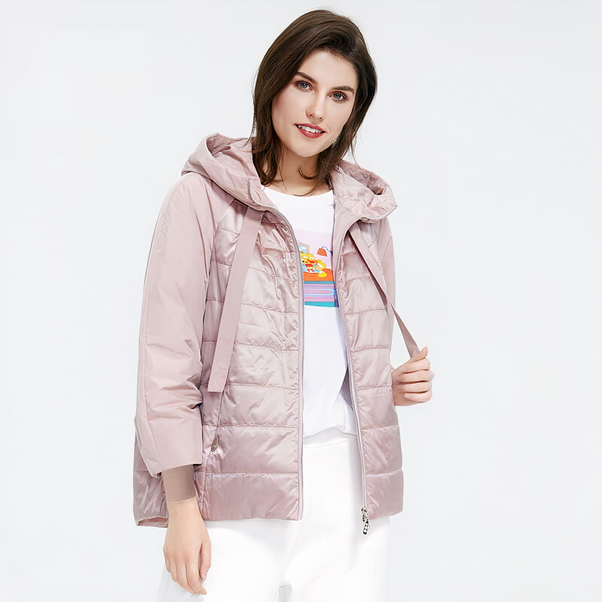 Un piumino primaverile oversize elegante e caldo. Il nostro piumino è realizzato in tessuto morbido e leggero, con un cappuccio completo per un maggiore calore.