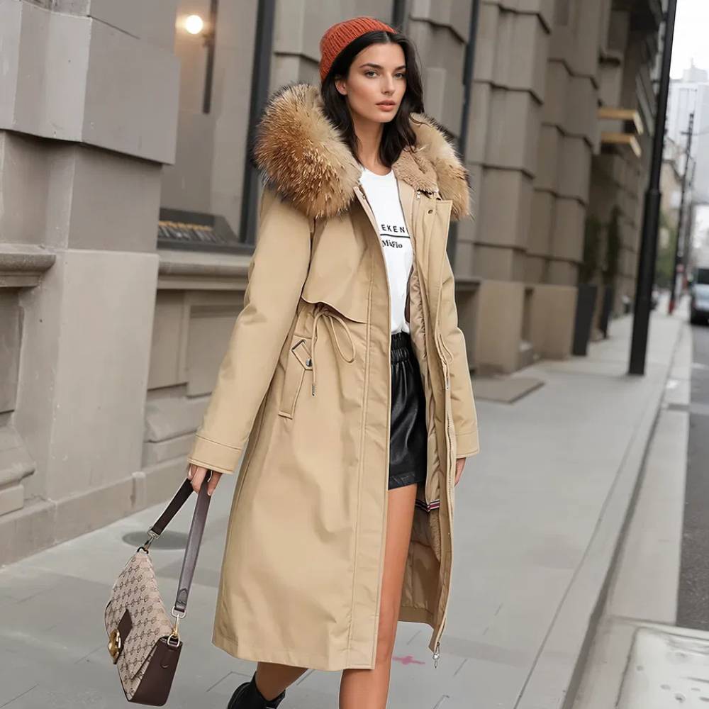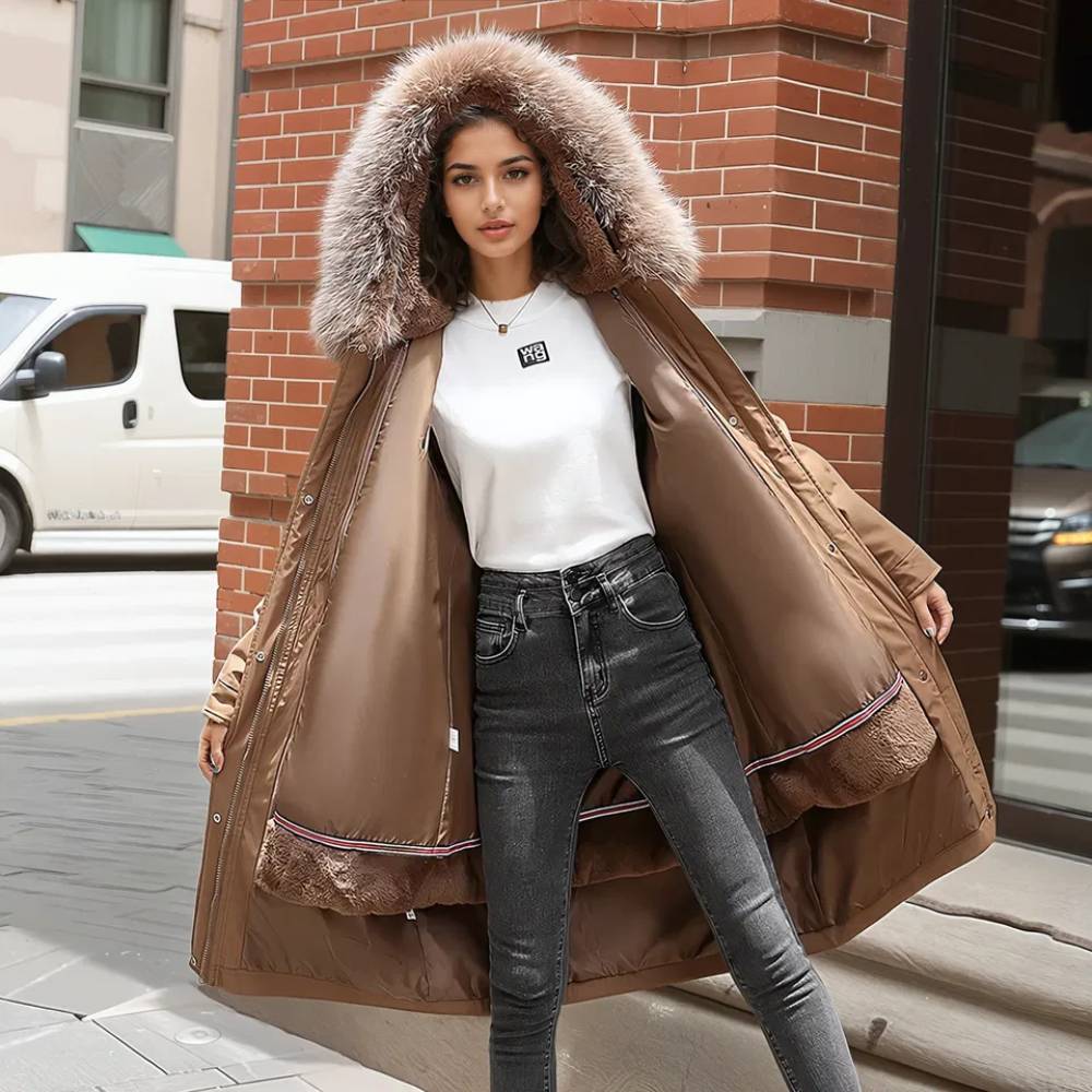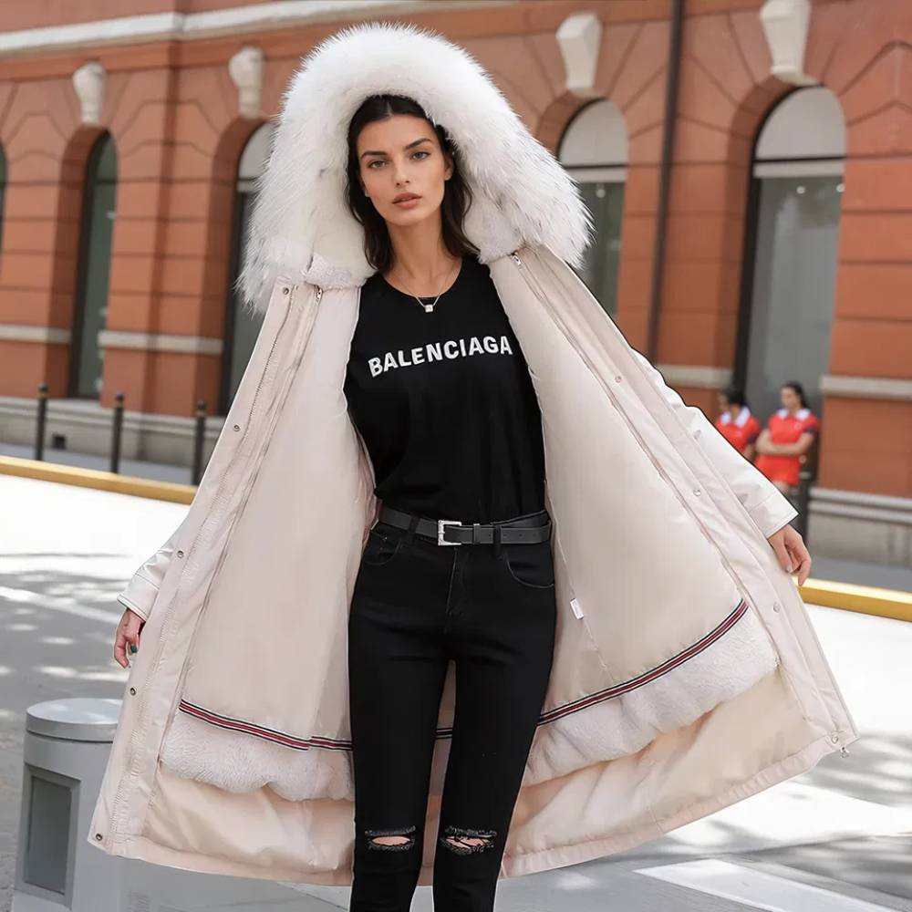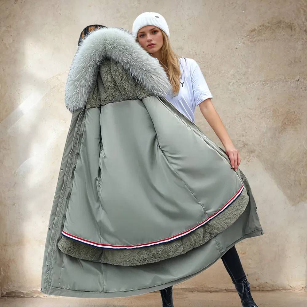 Piumino grande da donna con fodera in pelliccia rimovibile