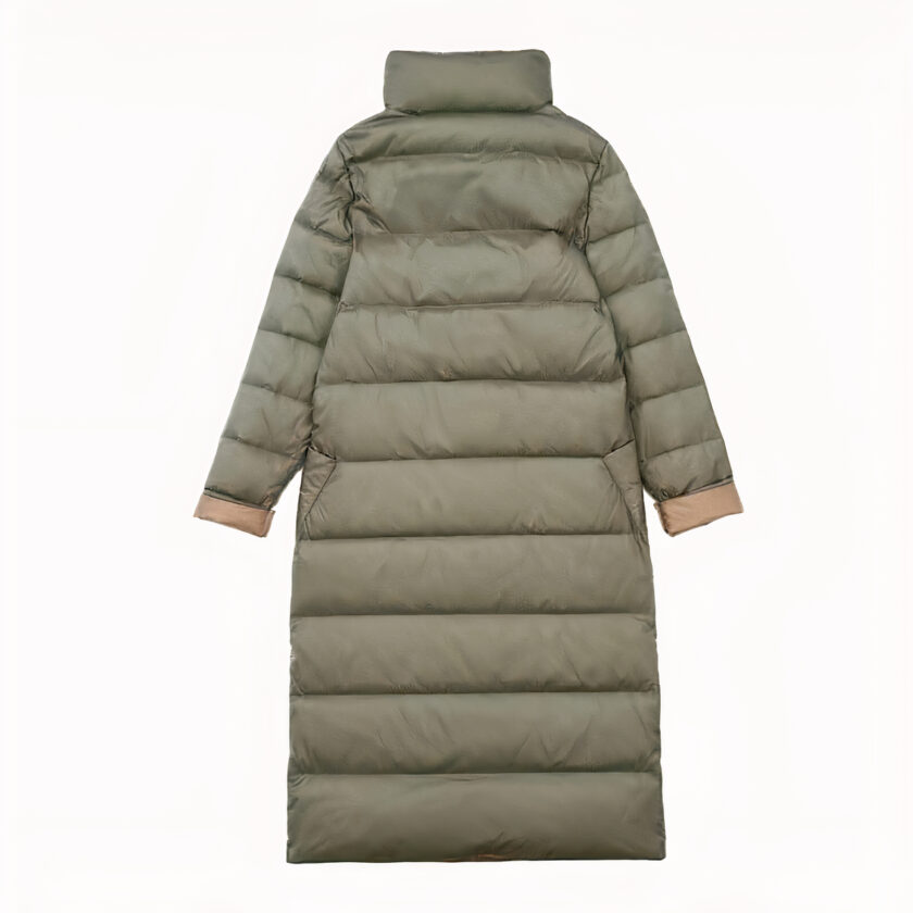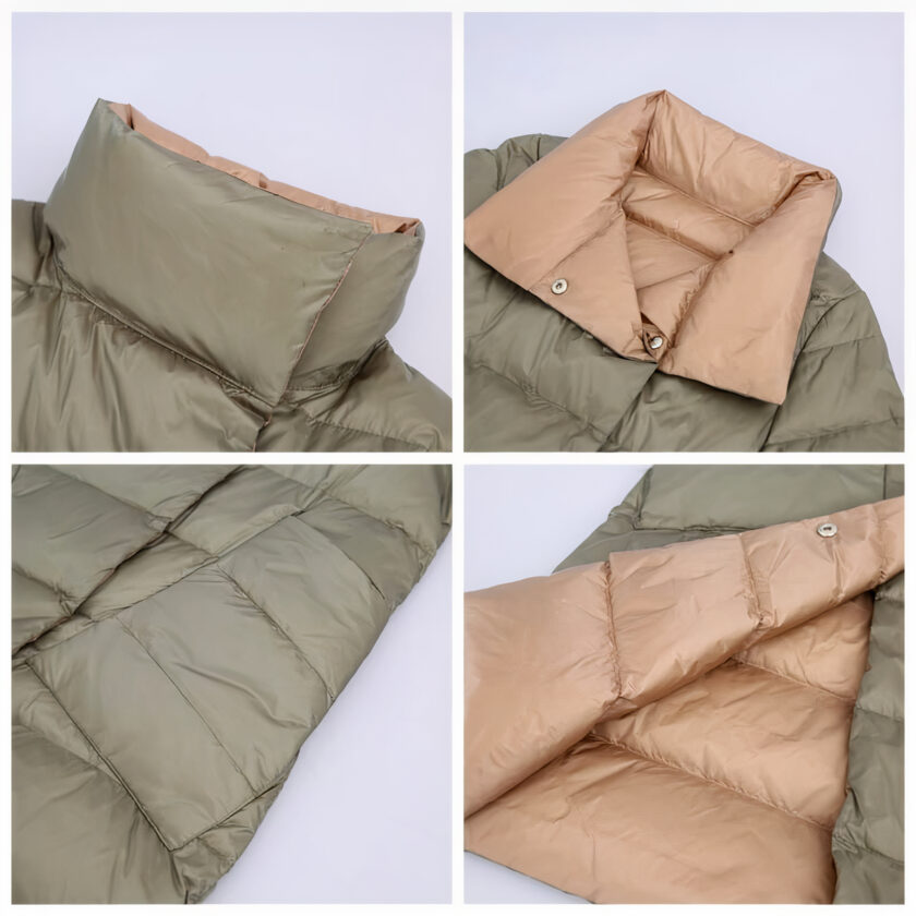 Questo piumino lungo e leggero è estremamente comodo da indossare. È aderente al busto per valorizzare la figura. Grazie ai due lati reversibili, potrete cambiare il vostro stile di abbigliamento in base al vostro umore!