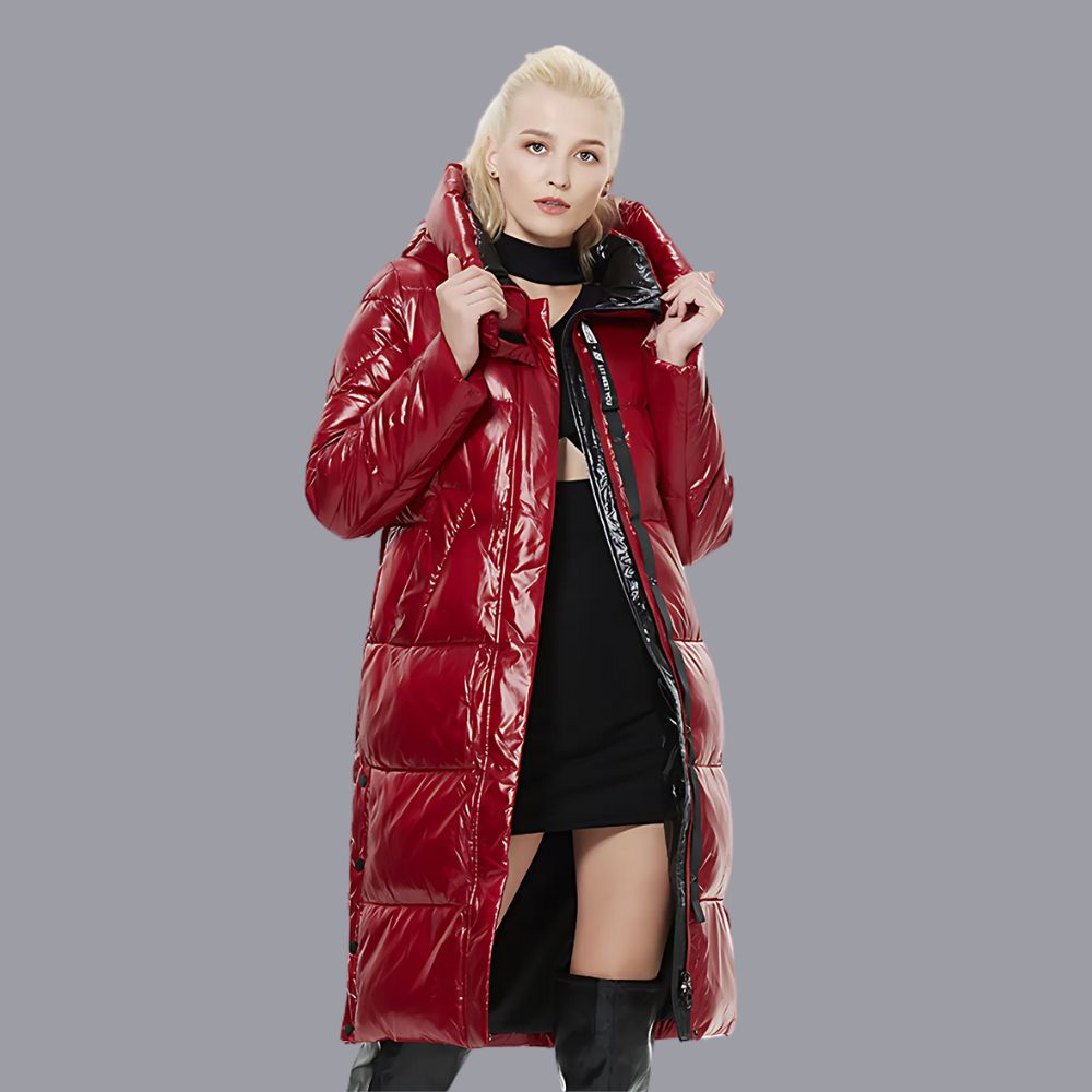 Questo piumino lungo da donna in vernice rossa è un capo audace che unisce stile e funzionalità. Con la sua finitura lucida e il vivace colore rosso, attira immediatamente l’attenzione, mentre il suo design trapuntato assicura un calore confortevole e un isolamento superiore.