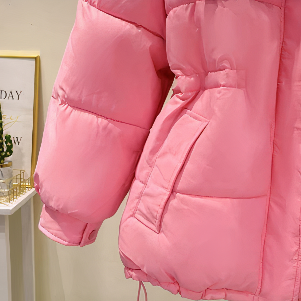 Questo piumino rosa da donna con tasche e cappuccio combina uno stile audace con la funzionalità. La sua tonalità brillante aggiunge energia al vostro abbigliamento, mentre la spessa imbottitura e il cappuccio aderente offrono calore e protezione. È pratico, con ampie tasche per gli oggetti essenziali.