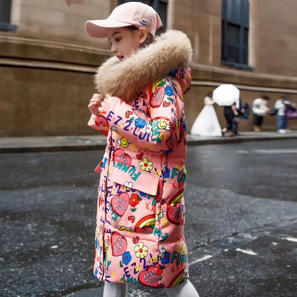 Il nostro piumino rosa di media lunghezza per ragazze è ideale per le fresche giornate primaverili o le serate invernali. Il cappuccio contrasta con il resto della giacca, conferendole un look di tendenza.