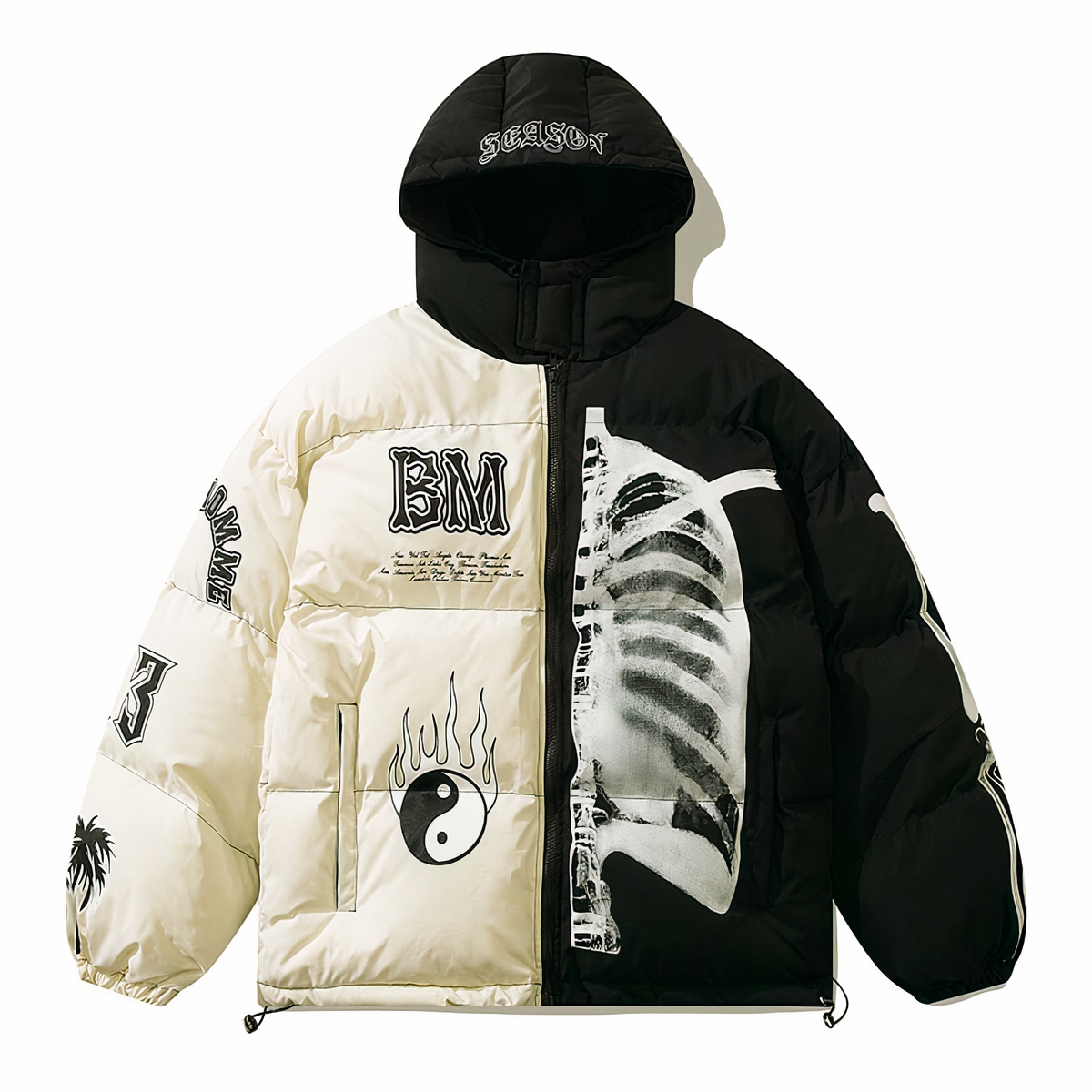 Questo splendido piumino streetwear bicolore da uomo con cappuccio in poliestere morbido al tatto è perfetto per affrontare il clima invernale con stile. È dotato di una zip centrale anteriore e di due tasche laterali, ideali per riporre i propri effetti personali.