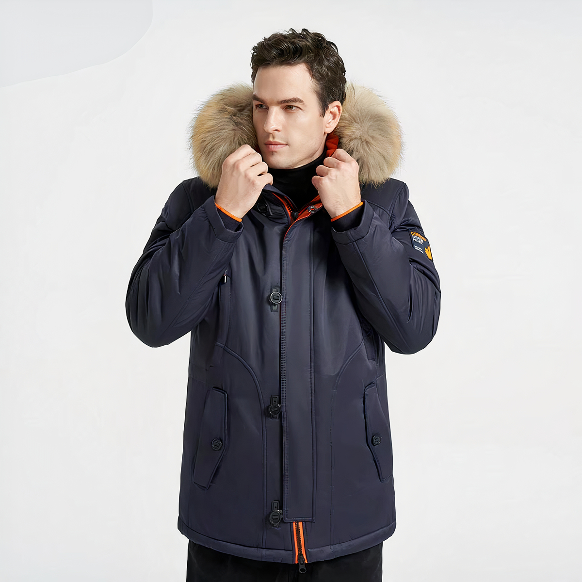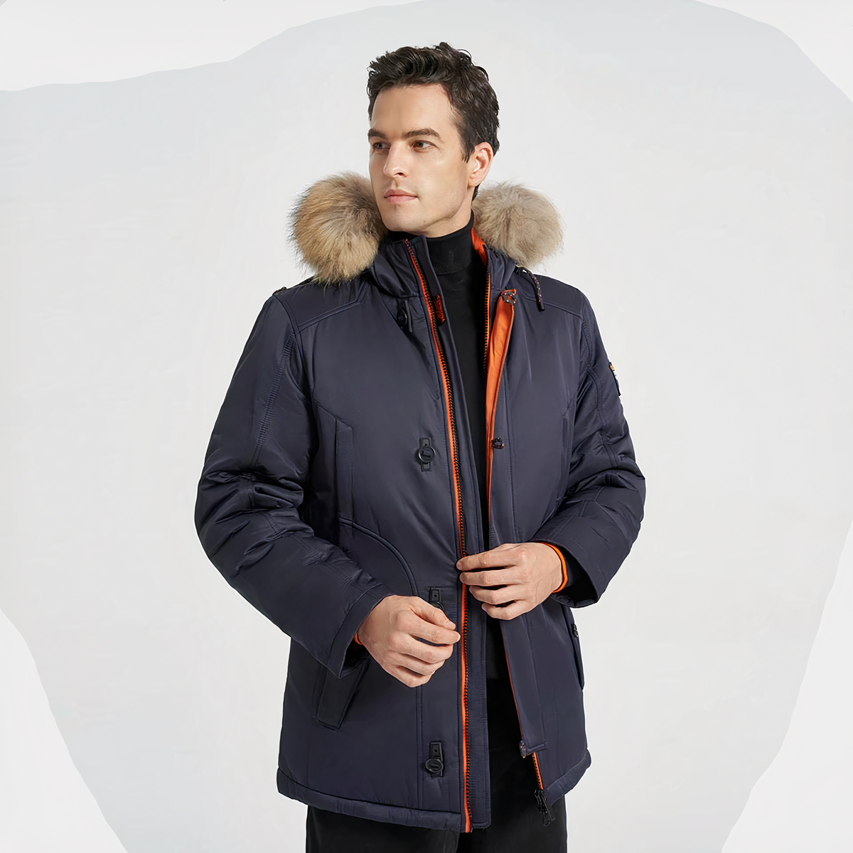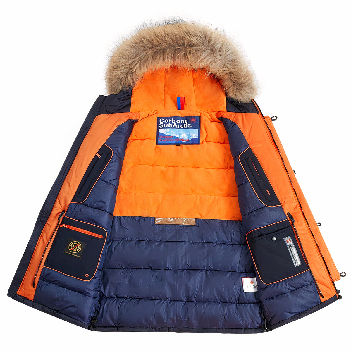 Le tasche multiple per i vostri oggetti personali vi piaceranno. Il cappuccio è circondato da pelliccia per tenere le orecchie e la testa al caldo e al riparo dalla pioggia.