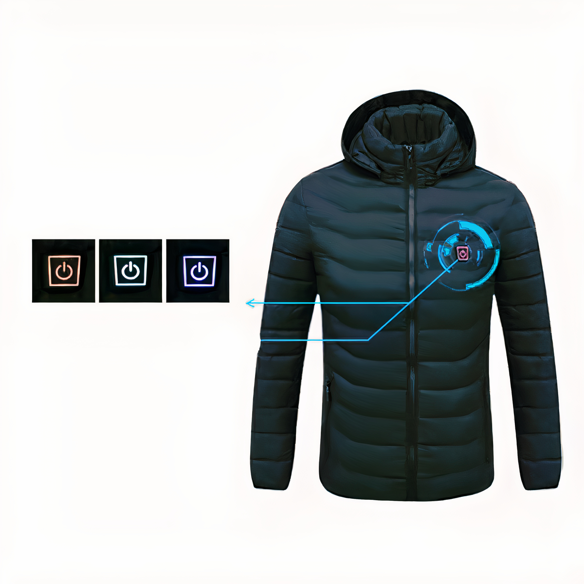 Il nostro superbo piumino con cappuccio è stato progettato per essere facile da usare e pratico. Con la semplice pressione di un pulsante, può essere impostato su 3 diversi livelli di temperatura per adattarsi a tutte le condizioni atmosferiche e alle vostre esigenze.