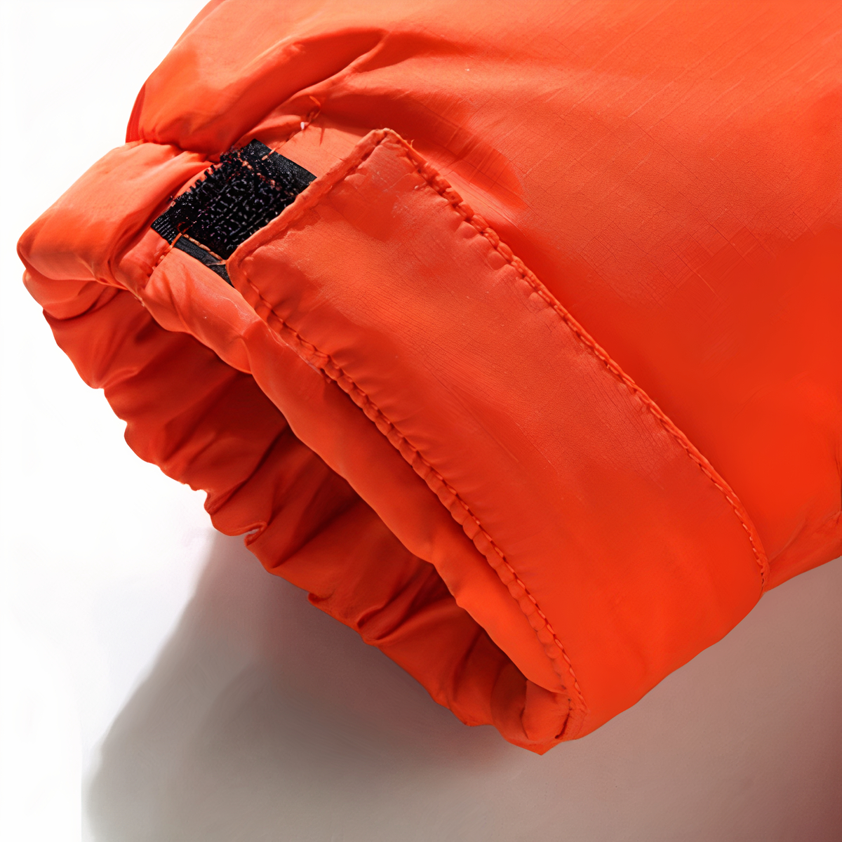 Questo piumino impermeabile arancione e nero è ultraleggero, traspirante e impermeabile. Il suo colore arancione appariscente lo rende ideale per le uscite con tempo grigio, quando è necessario essere visibili.