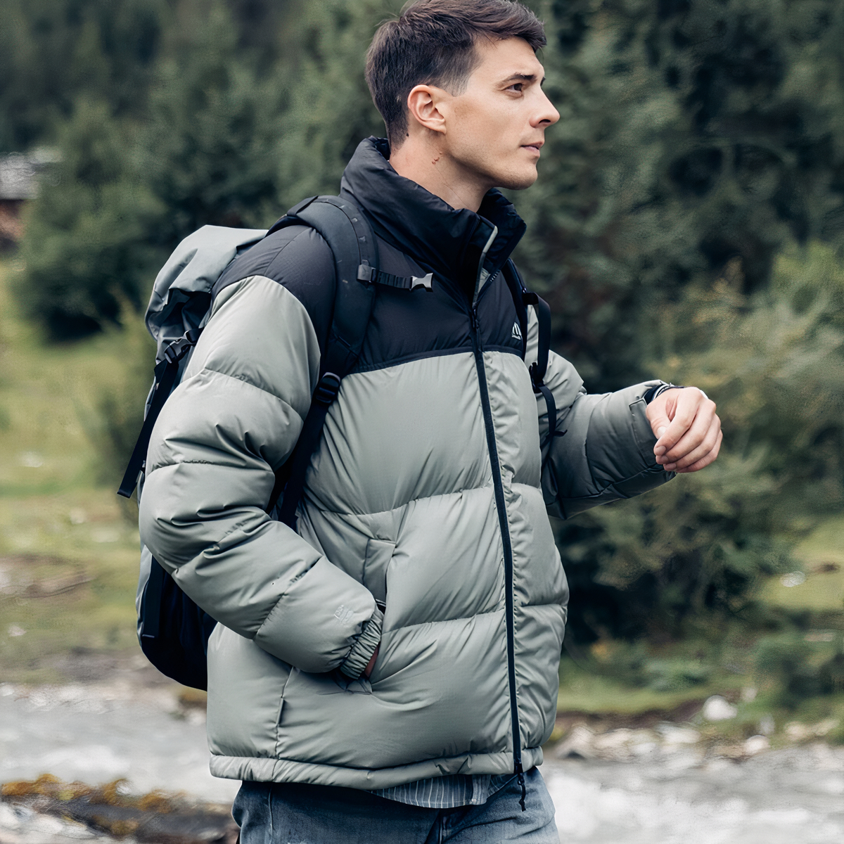 Piumino d’oca caldo bicolore da uomo